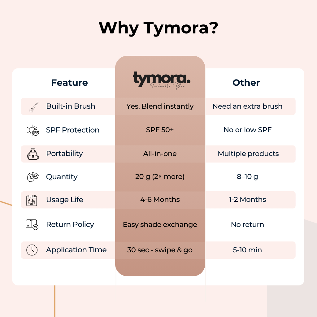 Meet the Tymora Instant Foundation Stick, your everyday beauty essential designed for women who do it all. Whether you’re heading to work, traveling, or getting ready for a night out, Tymora gives you an instantly smooth, radiant look — no fuss, no mirror time.
